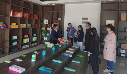 图为威宁益民电子商务有限责任公司总经理向贵州工贸职业学院一行介绍公司产品